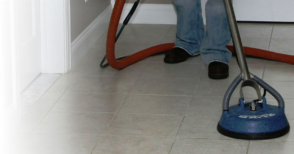 When “hard” tile floors become discolored, a pressure wash with a special floor tool that controls the splash can often restore the original appearance. Most of these tile floors need no finish, so this special cleaning can be done in conjunction with a scheduled carpet cleaning and you can save the expense of a special trip for cleaning just a few square feet of bathroom flooring.